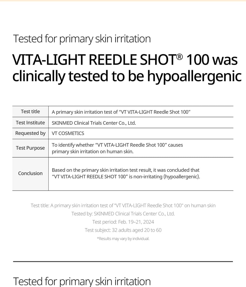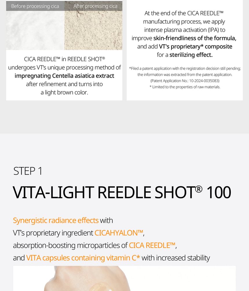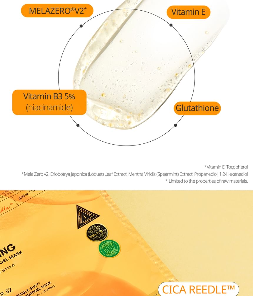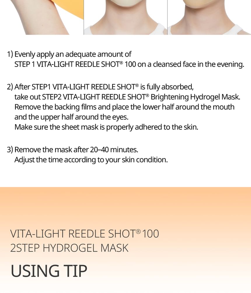 VT Vita-Light Reedle Shot 100 2-Step Hydrogel Mask is a dual-step hydrogel mask set that pairs an essence treatment with a hydrogel sheet mask. The system supports a brighter, more even-looking complexion by combining absorption-assisted delivery with hydration and soothing layers.
